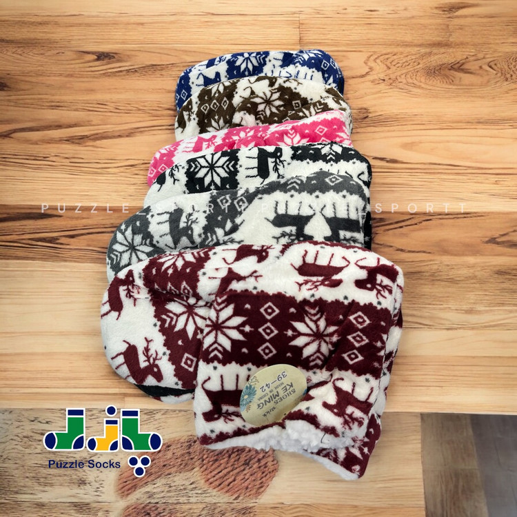 پاپوش زمستانی خزدار طرح گوزن و برف محصولی زیبا و کاربردی برای استفاده در منزل است که با طراحی جذاب و کیفیت مناسب، بهترین گزینه برای روزهای سرد سال محسوب میشود.